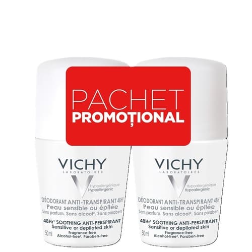 PACHETUL CONTINE: 2 X VICHY DEO ROLL-ON PIELE SENSIBILA SAU EPILATA 50ML