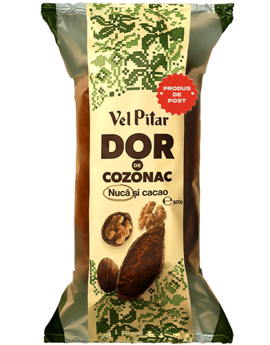 România,DOR Cozonac de post cu nucă și cacao este un cozonac din aluat pufos, dospit, cu umplutură de nucă și cacao. Are o crustă rumenită, obținută la coacere.