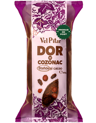 România,Cozonacul de post DOR cu stafide și cacao are un aluat pufos și o umplutură cu note de cacao, potrivit pentru momentele în care vrei un desert simplu, de împărțit. Se potrivește lângă ceai sau cafea.
