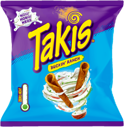 Spania,Takis Buckin' Ranch - intens dar nepicant - un gust răcoritor și intens de smântână, cu note acrișoare. Perfect pentru a-ți satisface pofta, fără pic de iuțeală.