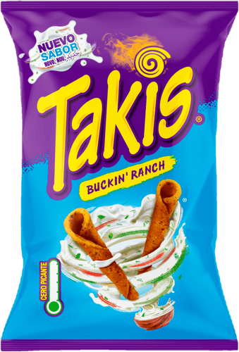 Spania,Takis Buckin' Ranch - intens dar nepicant - un gust răcoritor și intens de smântână, cu note acrișoare. Perfect pentru a-ți satisface pofta, fără pic de iuțeală.