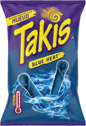 Spania,Takis Blue Heat este pentru cei care caută picantul dus la extrem. Combinația intensă de chili și lămâie verde îți aprinde simțurile din prima mușcătură, oferind o experiență puternică și memorabilă, doar pentru cei care pot face față focului…albastru.