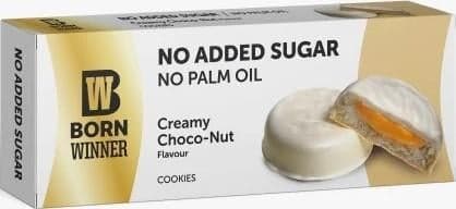 Polonia,Biscuiții proteici Born Winner Creamy Choco-Nut combină glazura de ciocolată cu o umplutură de alune, pentru o gustare practică. Sunt formulați fără zahăr și fără ulei de palmier.