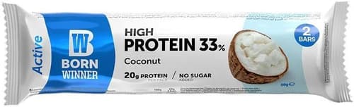 Italia,Born Winner Active Baton proteic cu cocos este o gustare practică pentru momentele dintre mese. Fiecare pachet conține 2 batoane și oferă 20 g proteine, cu mai puțin de 1 g zahăr.
