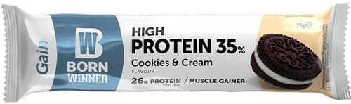 Italia,Batonul proteic Born Winner Gain, cu aromă de biscuiți și frișcă, este o opțiune practică pentru pauze rapide sau după activități intense. Fiecare baton are 26 g proteine.