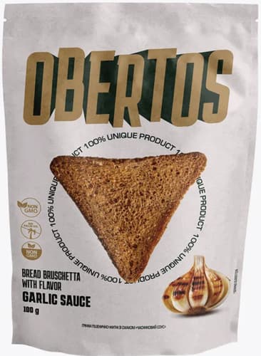 Ucraina,Obertos Chipsuri din pâine integrală cu aromă de usturoi sunt o gustare crocantă, potrivită pentru pauze scurte sau de luat la drum. Aroma de usturoi completează gustul de pâine integrală.