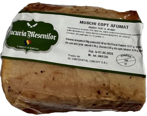 Răsfață-te cu aromele bogate ale Mușchiulețului de porc afumat și copt de la Bucuria Mesenilor. Această specialitate românească delicioasă oferă o experiență fragedă și suculentă, perfectă pentru orice masă. Afumat și copt cu măiestrie, aduce o notă de gust tradițional pe masa ta, transformând fiecare îmbucătură într-o adevărată bucurie. Savurează acest produs premium din România.