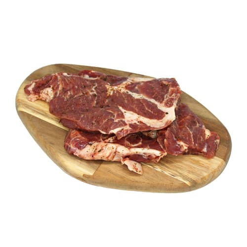 Pastrama de ceafă de porc dezosată Alintată de la CARNE SI SARE este fragedă și suculentă. Această specialitate românească este condimentată generos cu mirodenii și marinată pentru a absorbi arome intense, apoi gătită cu grijă pentru un gust delicios și plin de savoare. Perfectă pentru a aduce un plus de gust meselor tale.