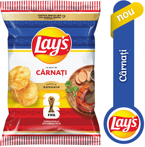 România,Deschide Lay's, savureaza fiecare zi! Din cartofi atent selectionati, cu gust de carnati , chipsurile Lay’s sunt atat de crocante si delicioase!Descopera portofoliul Lay's si campania curenta pe pepsicosmiles.ro.