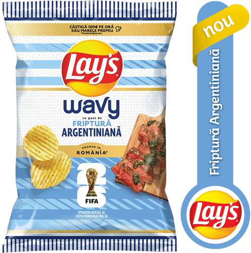 România,Deschide Lay's. Savureaza fiecare zi! Lay's Wavy. Chipsuri ondulate, din cartofi atent selectionati, cu vita la gratar. Atat de crocante si delicioase!