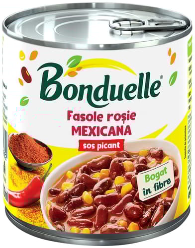 Mexicana, fasole rosie boabe cu porumb dulce in sos tomat picant de la Bonduelle se potriveste perfect cu o lipie, o tortilla sau intr-un burrito. Orice varianta alegi, combinatia de porumb dulce cu fasole rosie cremoasa si aromata, imbogatita cu condimente picante va imprumuta savoarea ei si celorlalte alimente pe care le insoteste.