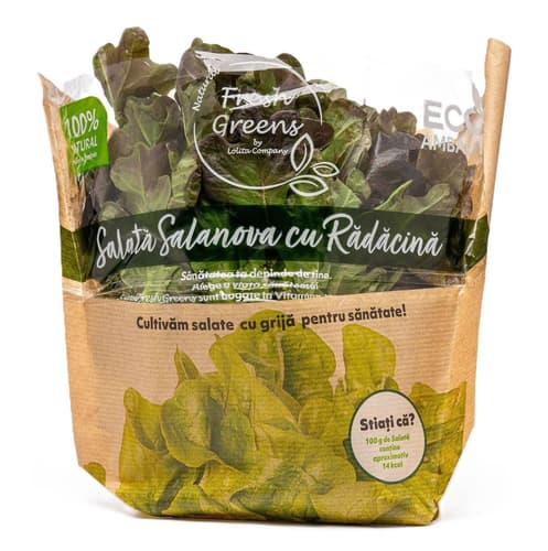 Salanova rossa cu radacina, este o salata care aduce un plus de gust si aroma adaugata in salatele clasice.Datorita modului ingenios de ambalare, impreuna cu radacina produsului, aceasta poate sa fie pastrata un timp mai indelungat.