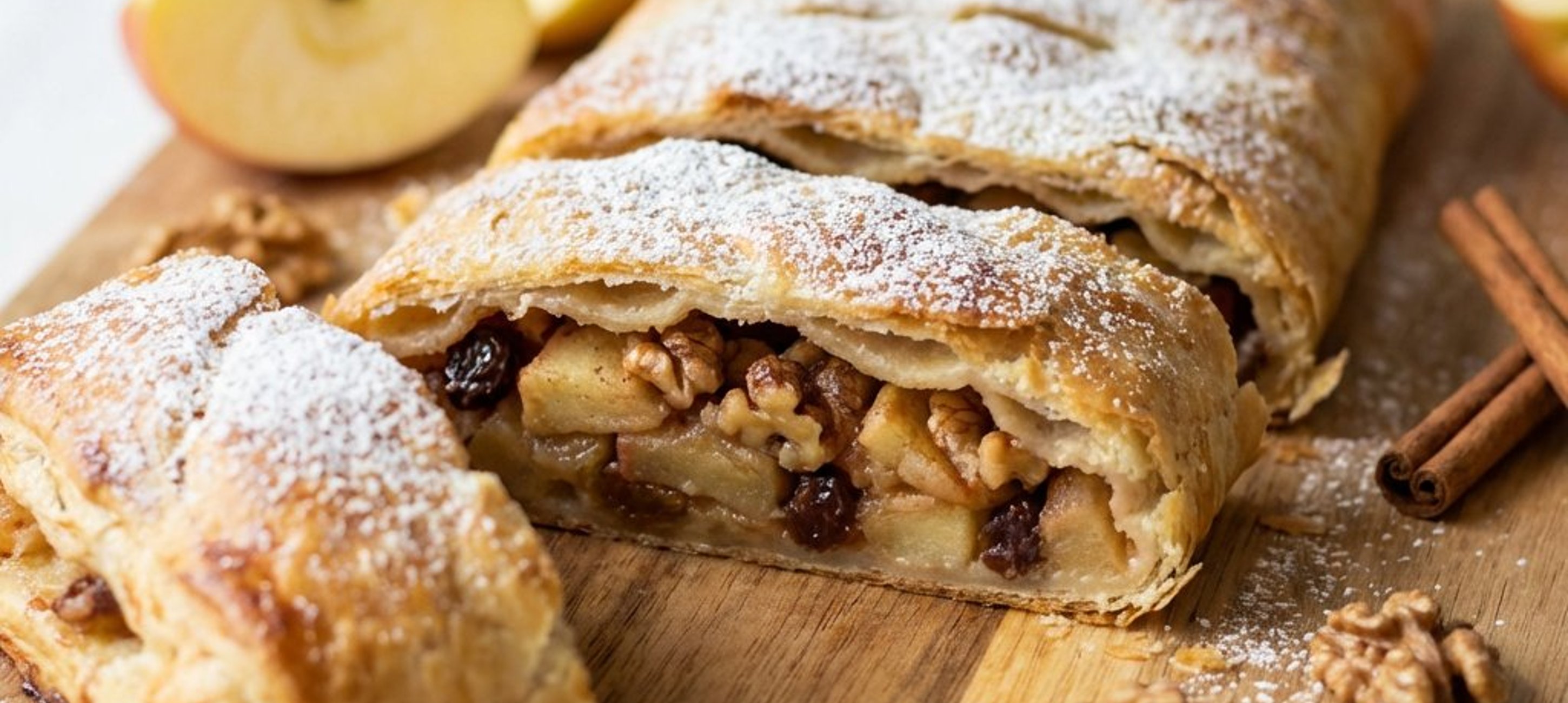 Pentru un plus de savoare, servește ștrudelul cald, alături de o cupă de înghețată de vanilie sau puțină frișcă bătută. Poftă bună!