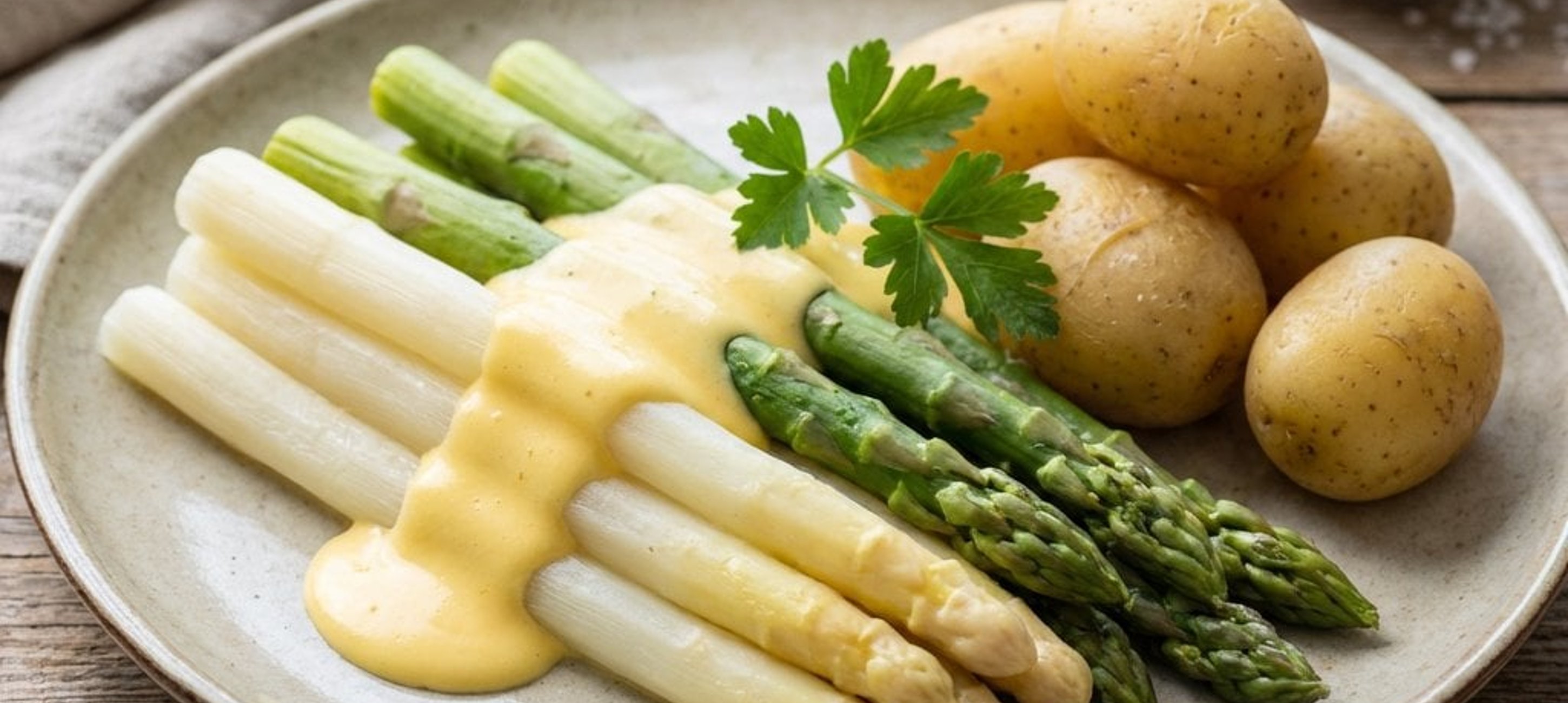 Când fierbeți sparanghelul, doar tulpinile ar trebui să fie scufundate în apă, vârfurile rămânând afară pentru a se găti la abur. În ultimul minut de fierbere, puteți scufunda și vârfurile. secretul unei texturi catifelate fără a găti excesiv gălbenușurile este căldura indirectă a aburului.