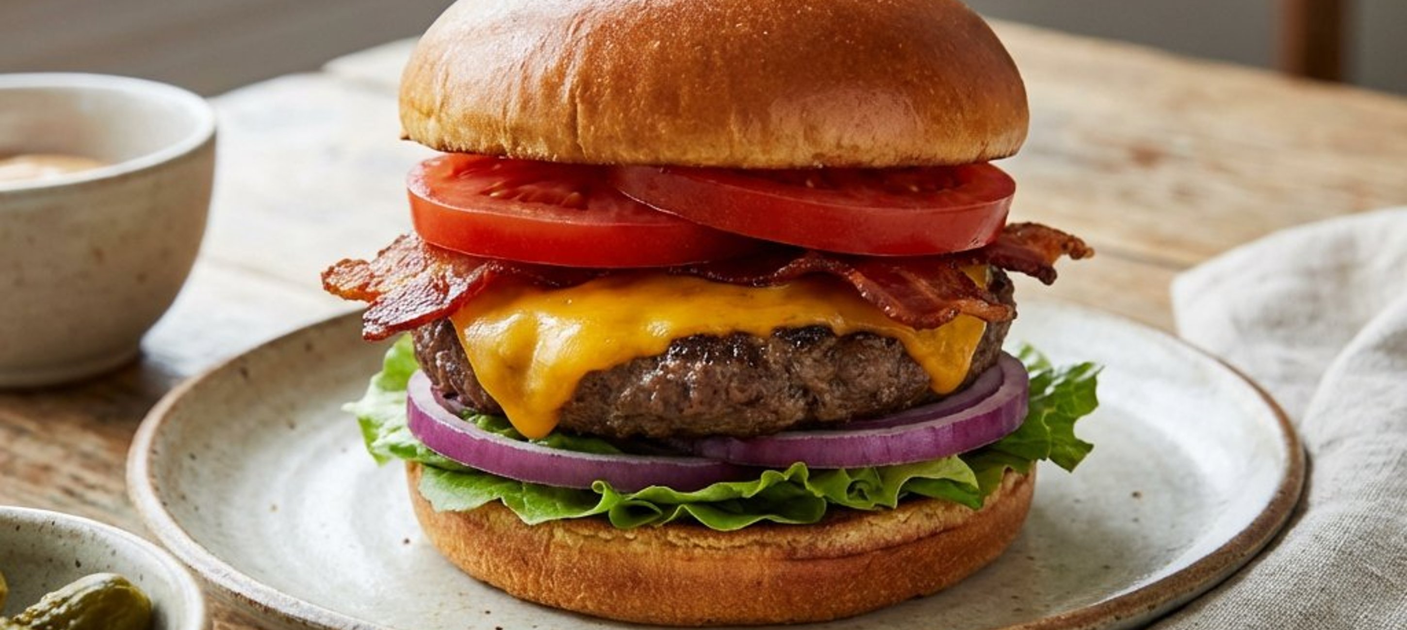 Pentru un burger perfect, asigurați-vă că grătarul este bine încins înainte de a pune carnea. Nu uitați să lăsați carnea să se odihnească 1-2 minute după ce o scoateți de pe grătar pentru a-și păstra sucurile. #sezamochef