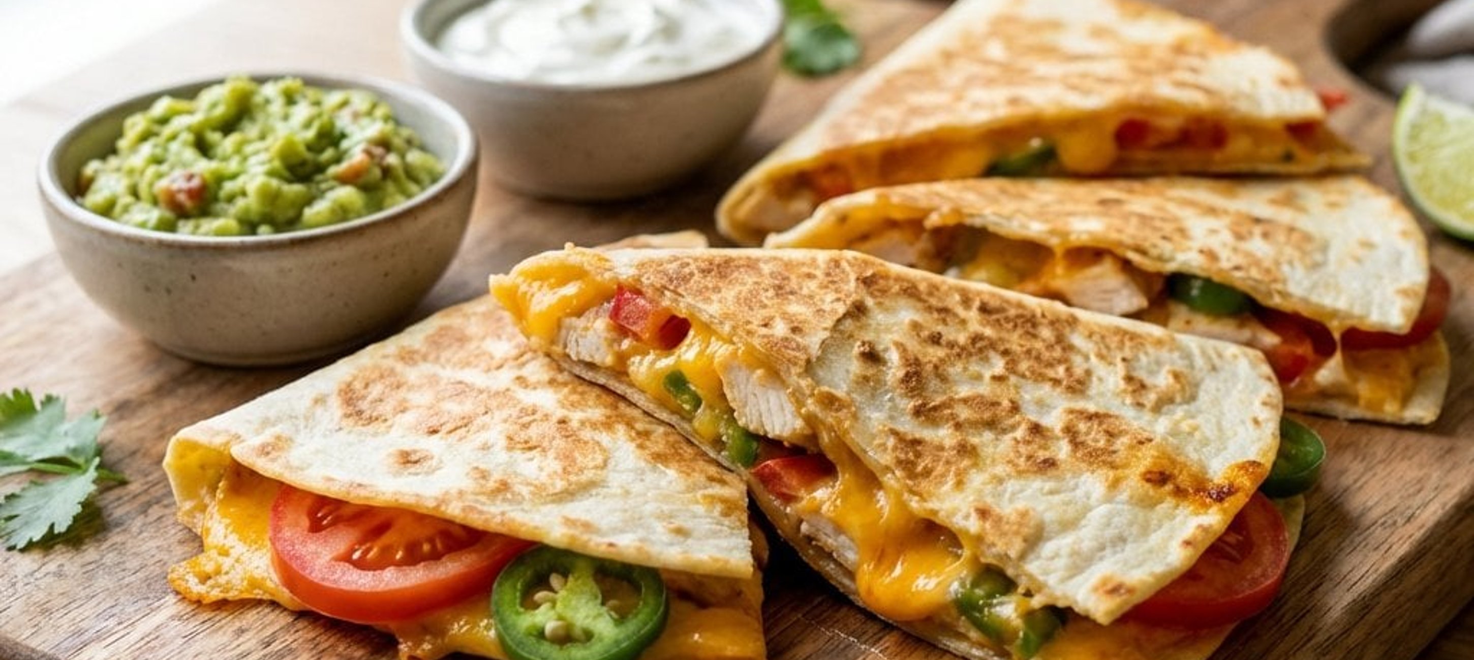 - 3Servește quesadillas calde, alături de smântână fermentată și restul de guacamole. Poftă bună!