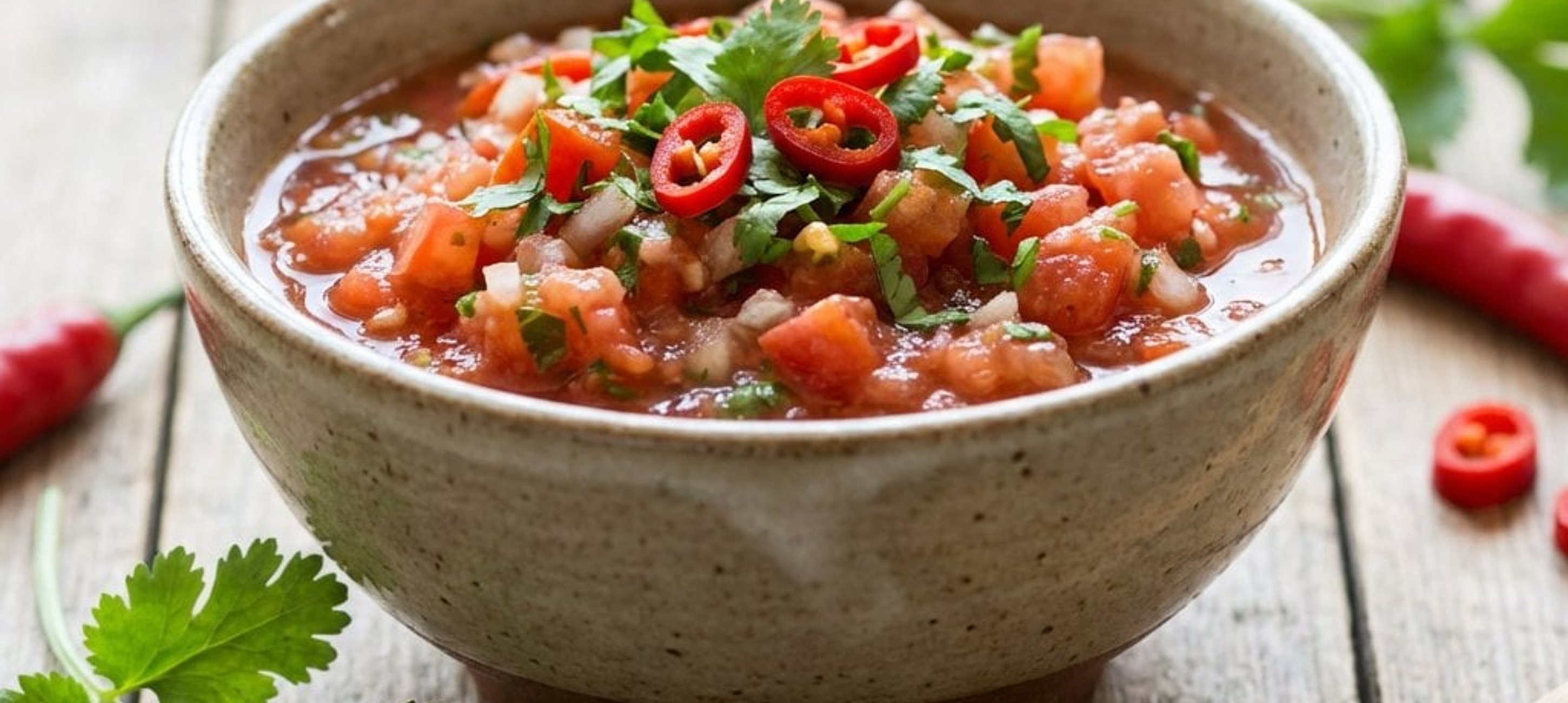 Pentru o aromă mai intensă, lăsați salsa la frigider timp de 30 de minute înainte de servire. Se potrivește excelent cu chipsuri tortilla sau ca topping pentru pește la grătar.