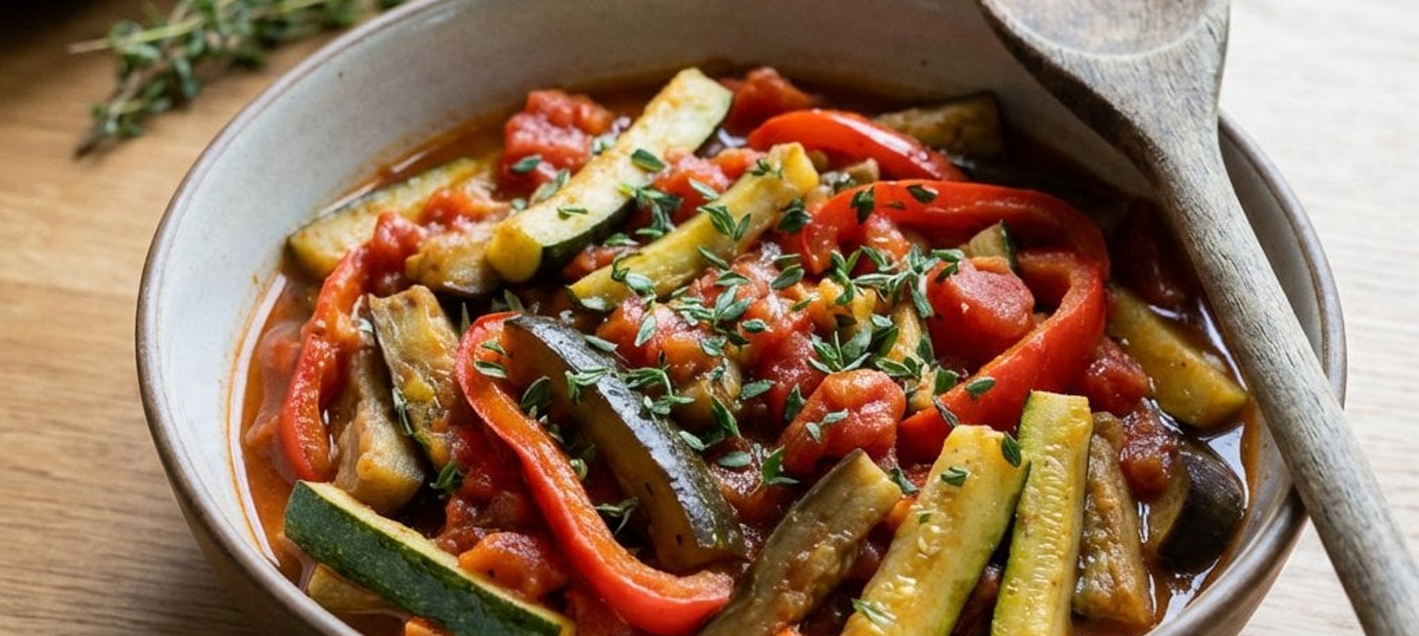 Pentru un gust desăvârșit, asigură-te că legumele sunt tăiate la dimensiuni similare, astfel încât să se gătească uniform. Servește Ratatouille-ul cald, alături de o felie de pâine cu maia prăjită sau ca garnitură pentru o friptură suculentă. Poftă bună!
