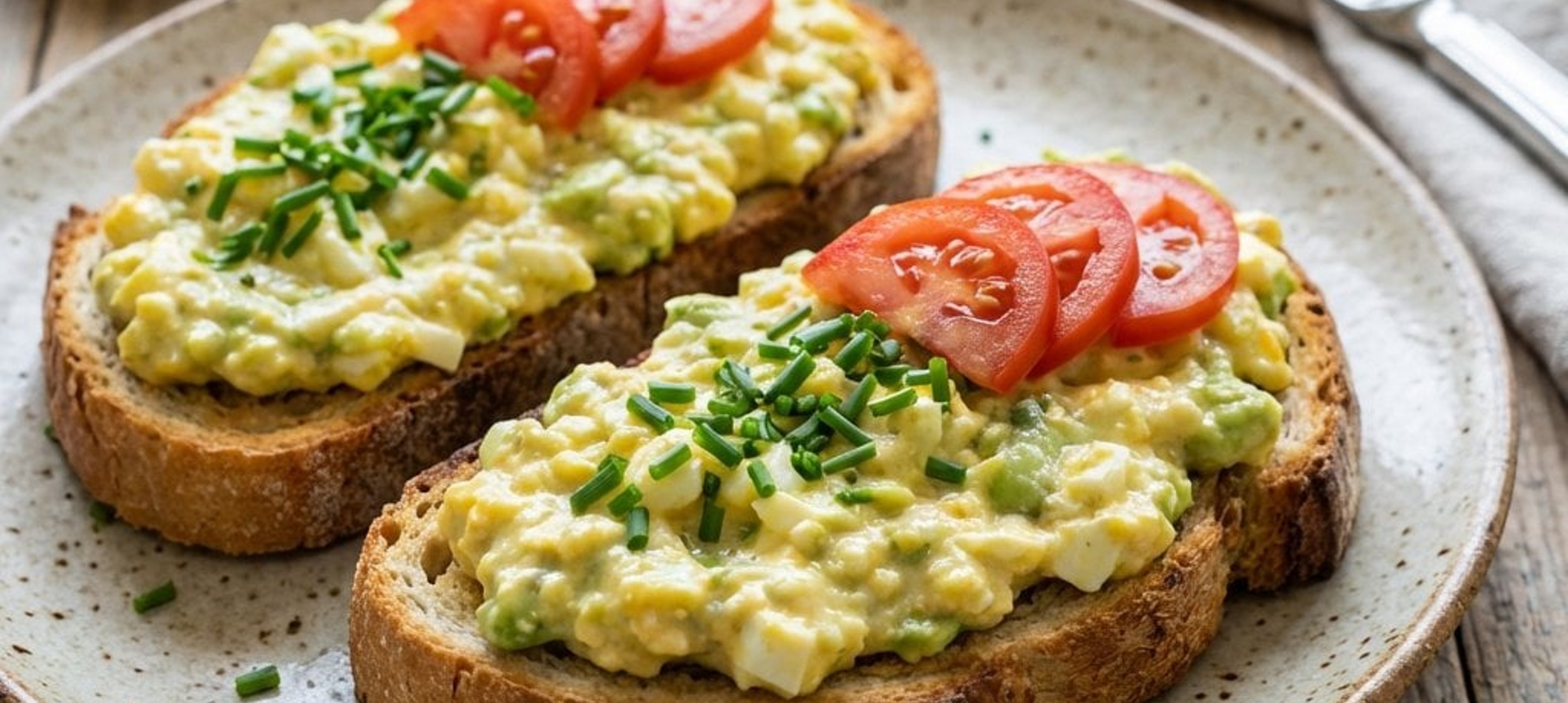 - 3Taie roșiile în felii de aproximativ 1 cm grosime. Prăjește feliile de pâine toast, așază pe fiecare câte o felie de roșie și adaugă deasupra o porție generoasă din pasta de ouă și avocado.