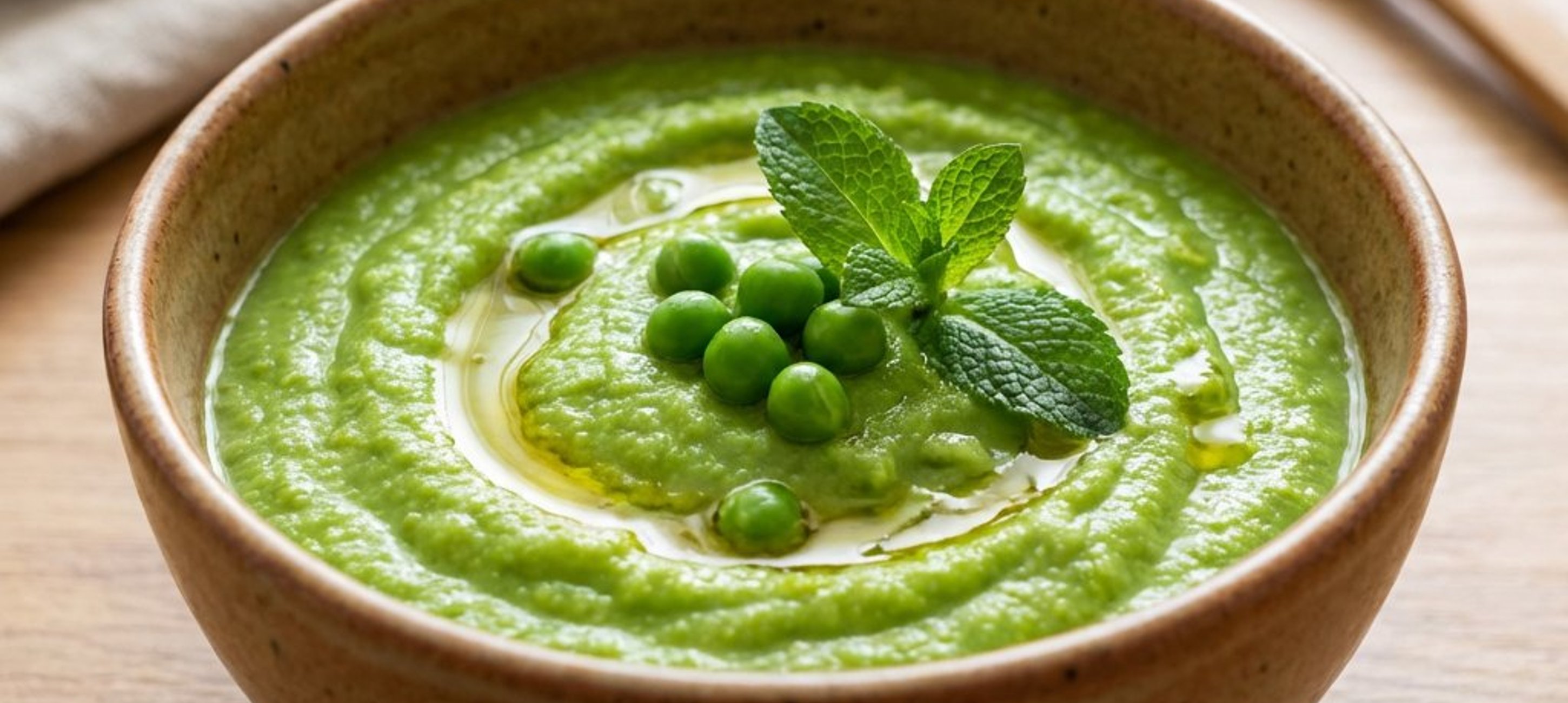 Puteți păstra câteva boabe de mazăre întregi pentru a decora farfuria la final.