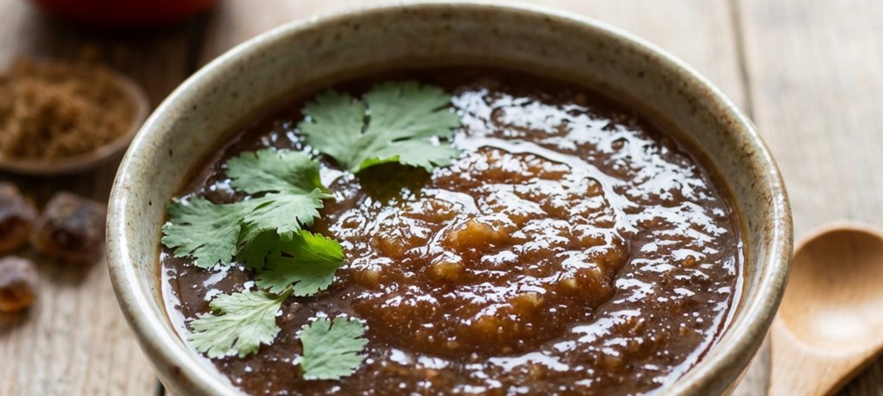 - 2Luați crăticioara de pe foc și lăsați sosul să se răcorească puțin. Între timp, radeți mărul fin. Adăugați mărul ras și coriandrul proaspăt tocat fin în sosul cald și amestecați bine pentru a omogeniza aromele.