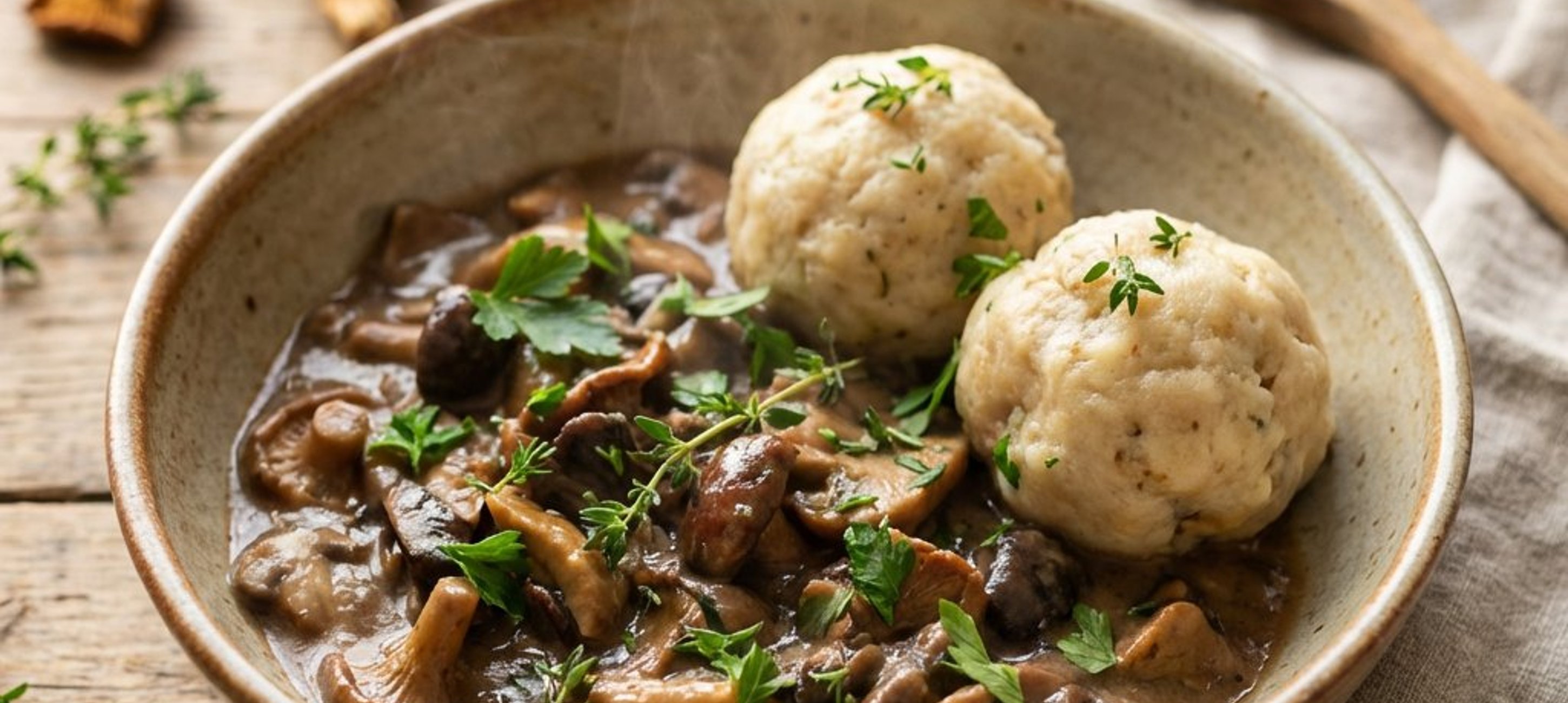 Pentru un plus de aromă, poți folosi un mix de ciuperci cât mai variat. Găluștele pot fi pregătite și în avans și reîncălzite la abur înainte de servire. Poftă bună!