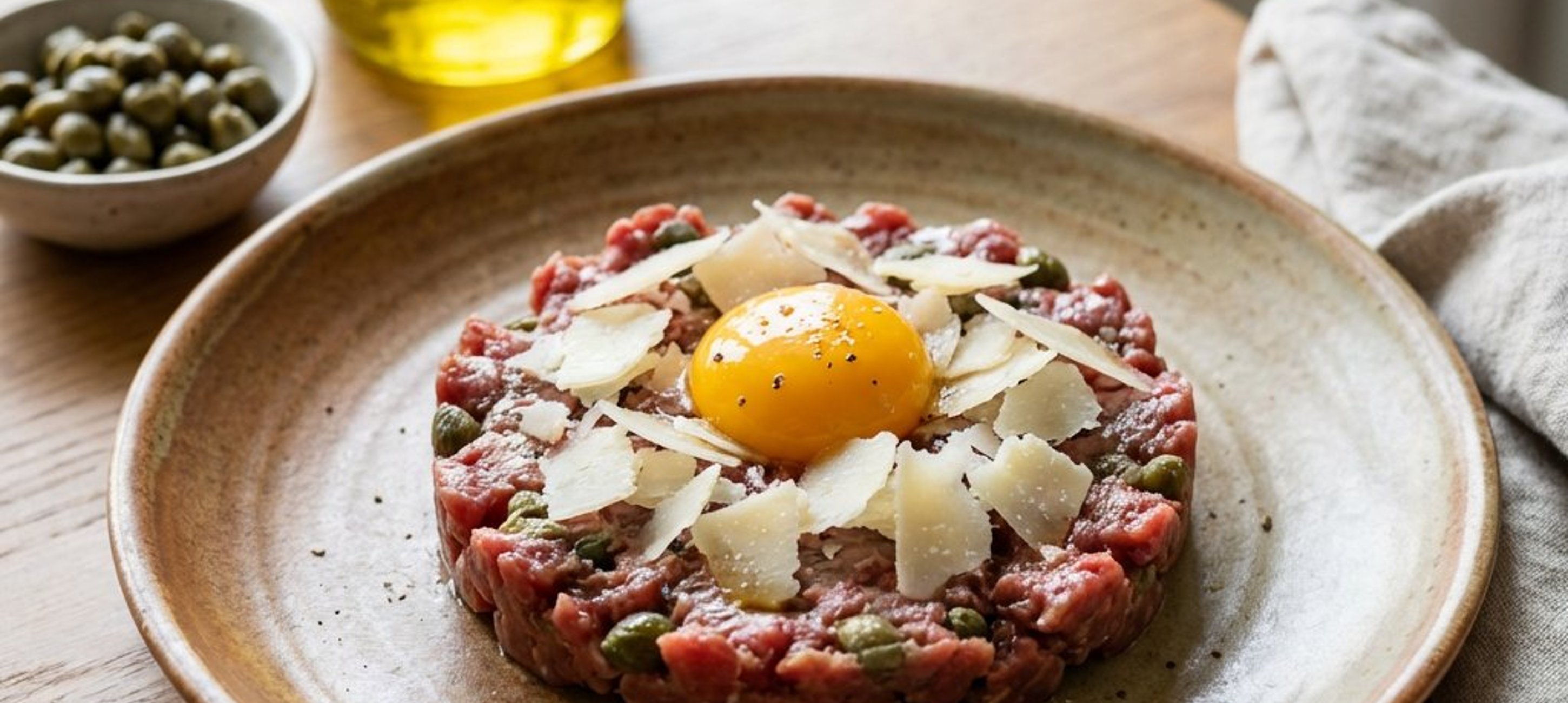- 2Toacă mărunt fileurile de anșoa, caperele, parmezanul și ceapa șalotă. Amestecă-le întrun bol încăpător cu carnea tăiată, uleiul de măsline, sarea și piperul negru proaspăt măcinat.