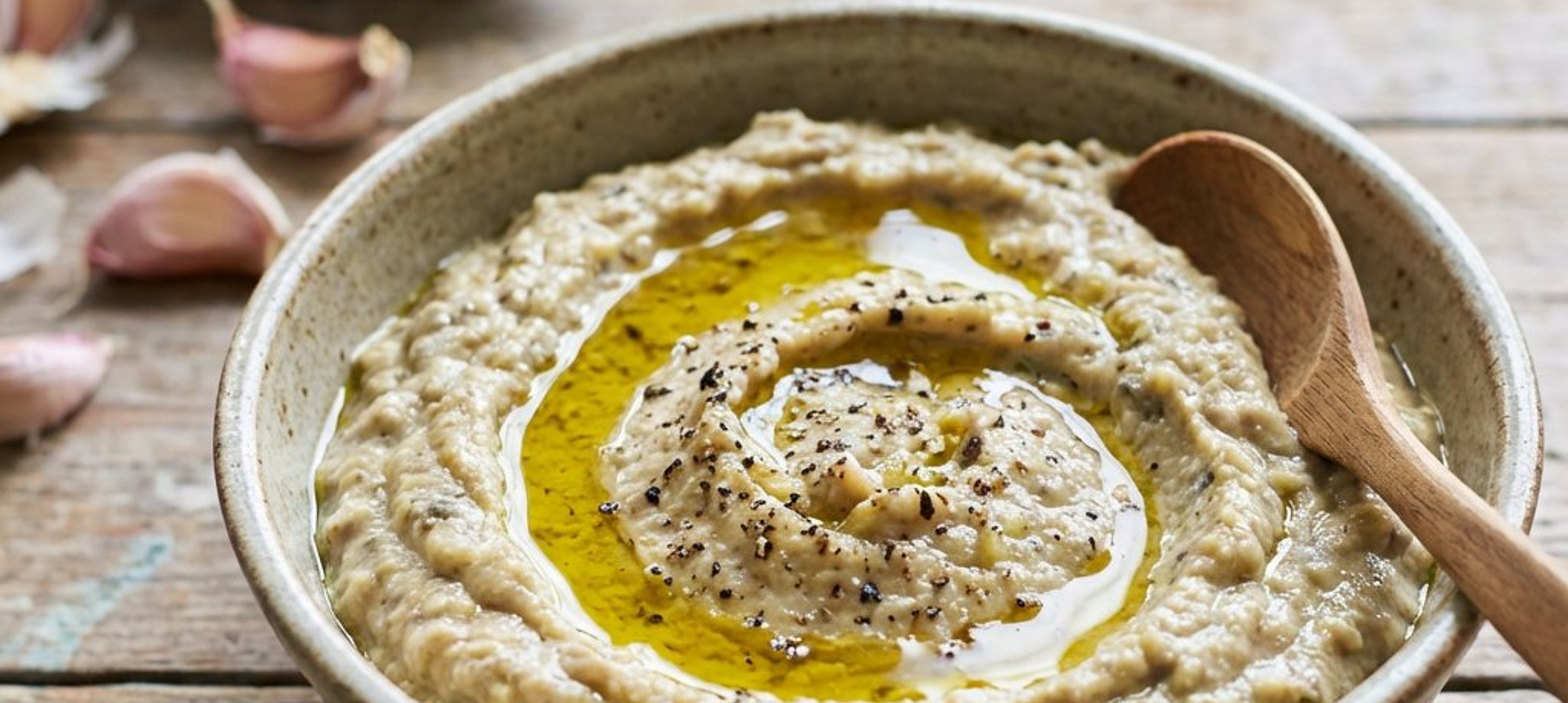 - 3Toacă miezul vinetelor mărunt sau pasează-l ușor cu o furculiță într-un bol încăpător. Adaugă pasta tahini, sucul de lămâie, usturoiul zdrobit, uleiul de măsline, sarea și piperul. Amestecă bine până când obții o compoziție omogenă și cremoasă. Servește cu lipie sau pâine prăjită.