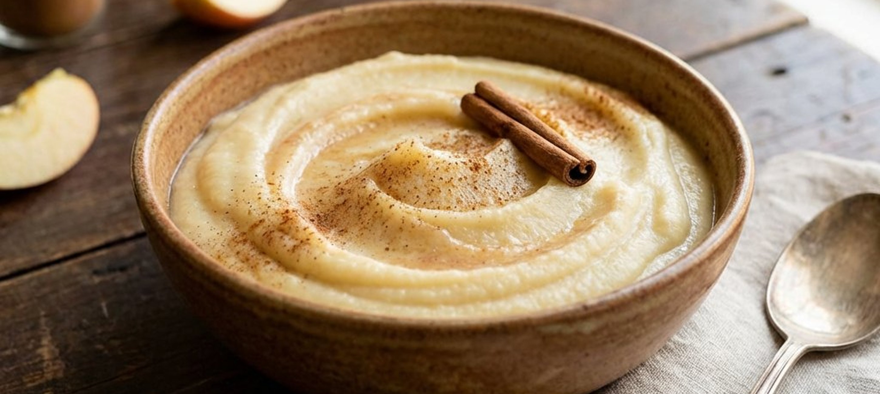 - 2Ia cratița de pe foc și scoate batoanele de scorțișoară. Adaugă restul de unt rece, tăiat cubulețe, și mixează totul cu un blender vertical până obții o textură fină și cremoasă. Potrivește gustul cu sare și amestecă bine.
