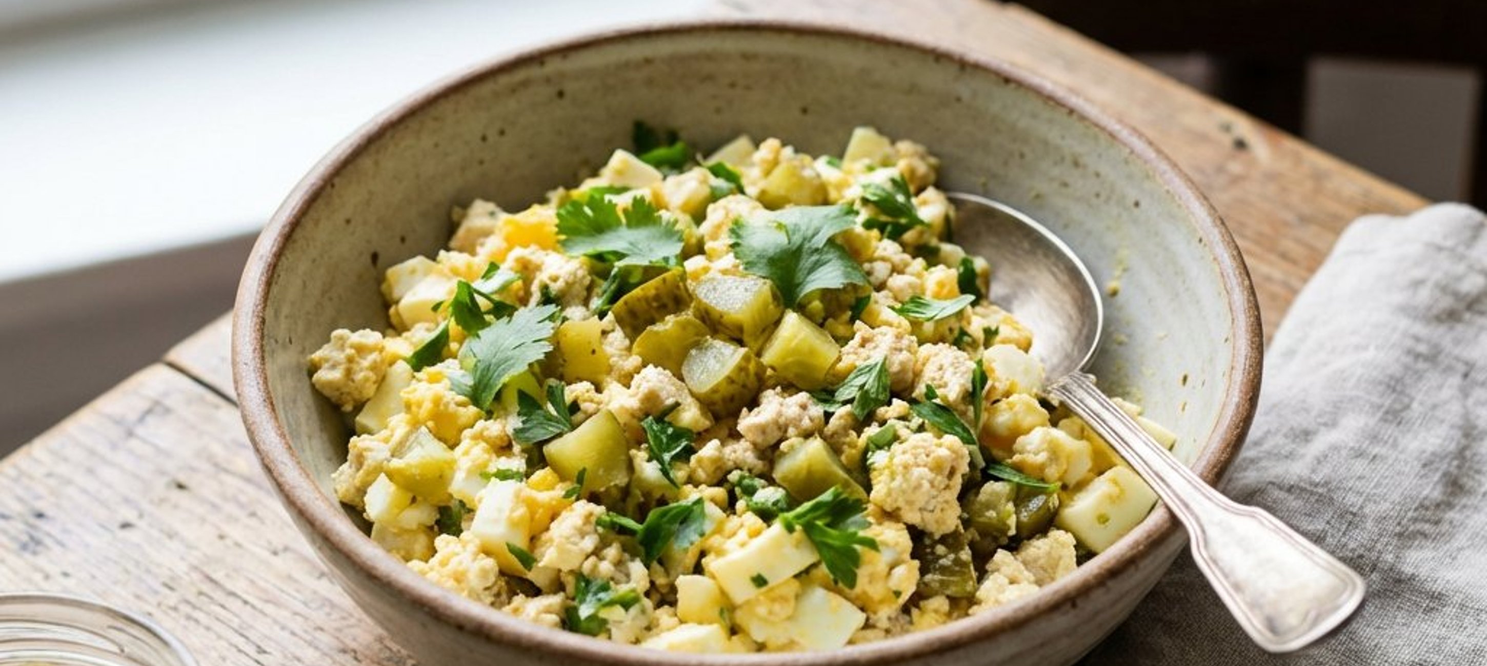 Pentru o variantă mai picantă, puteți adăuga un praf de fulgi de chili. Salata se potrivește excelent cu pâine integrală prăjită sau ca umplutură pentru wrap-uri.