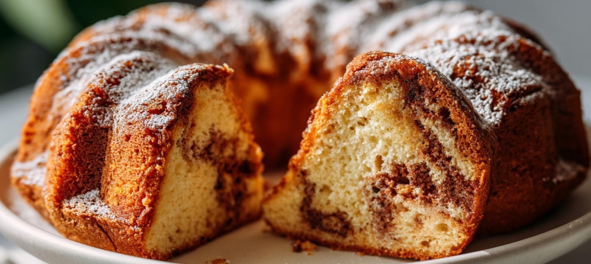 - 5Umple în tavă: Pune aluatul simplu și pe cel cu cacao în formă, cu lingura, în straturi alternative. Folosește ușor un cuțit pentru a crea un efect marmorat.