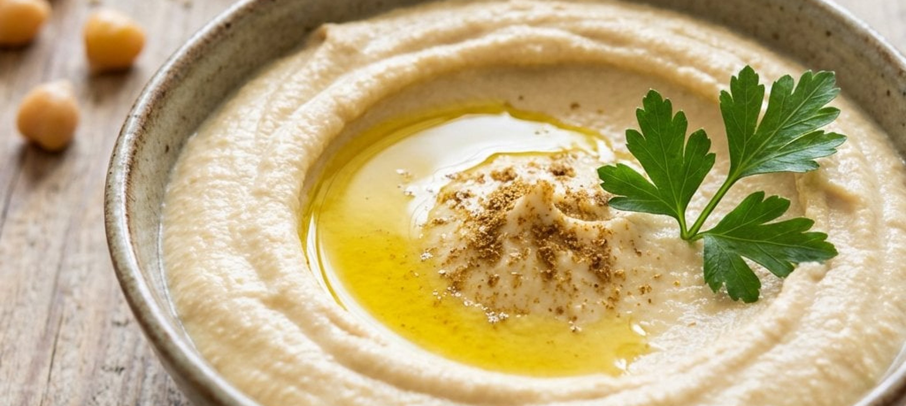 Pentru un hummus extrem de fin, poți îndepărta cojile boabelor de năut după fierbere, deși procesul necesită puțină răbdare. Servește-l întotdeauna cu un strop generos de ulei de măsline extravirgin deasupra.