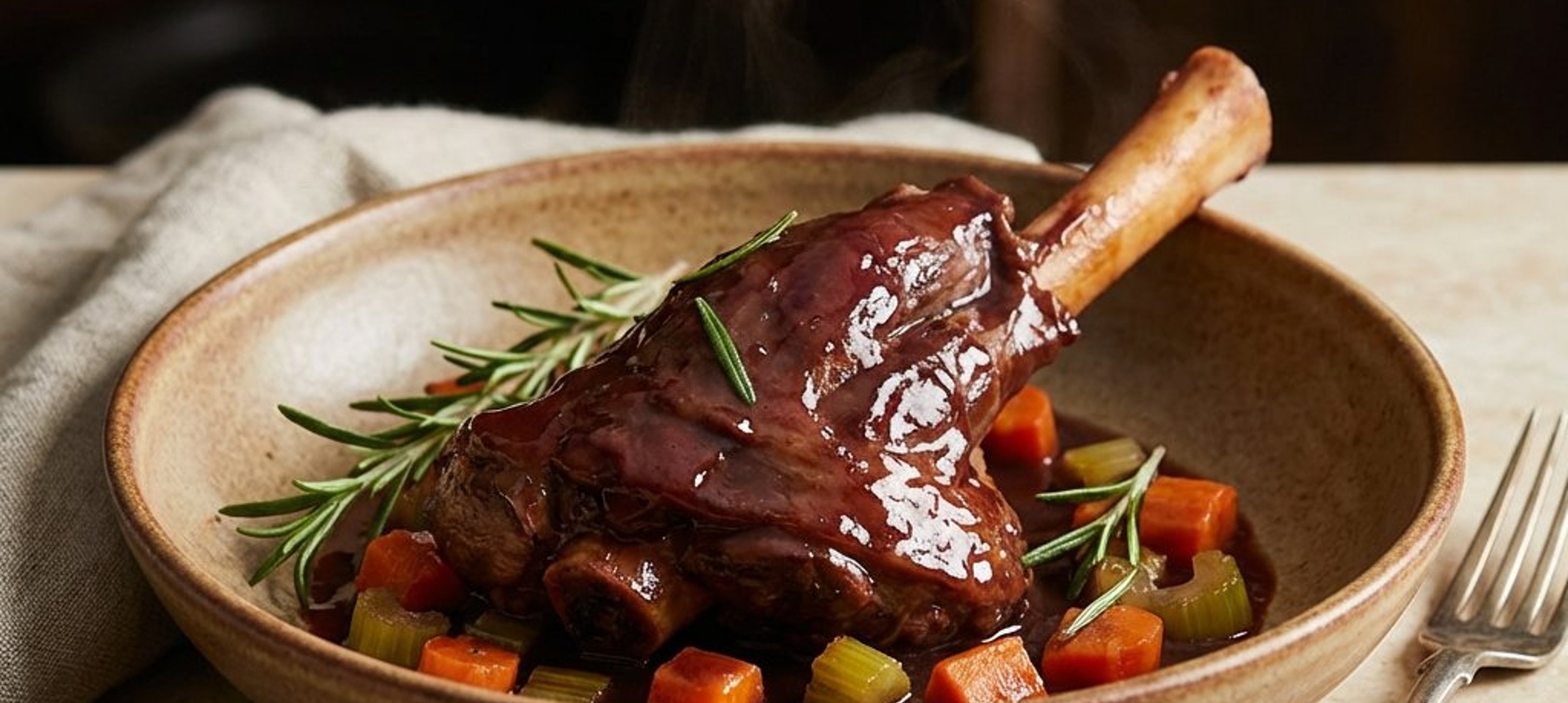- 3Serviți ciolanul de miel alături de un piure cremos de cartofi sau țelină, stropind din abundență cu sosul bogat de vin. Poftă bună!