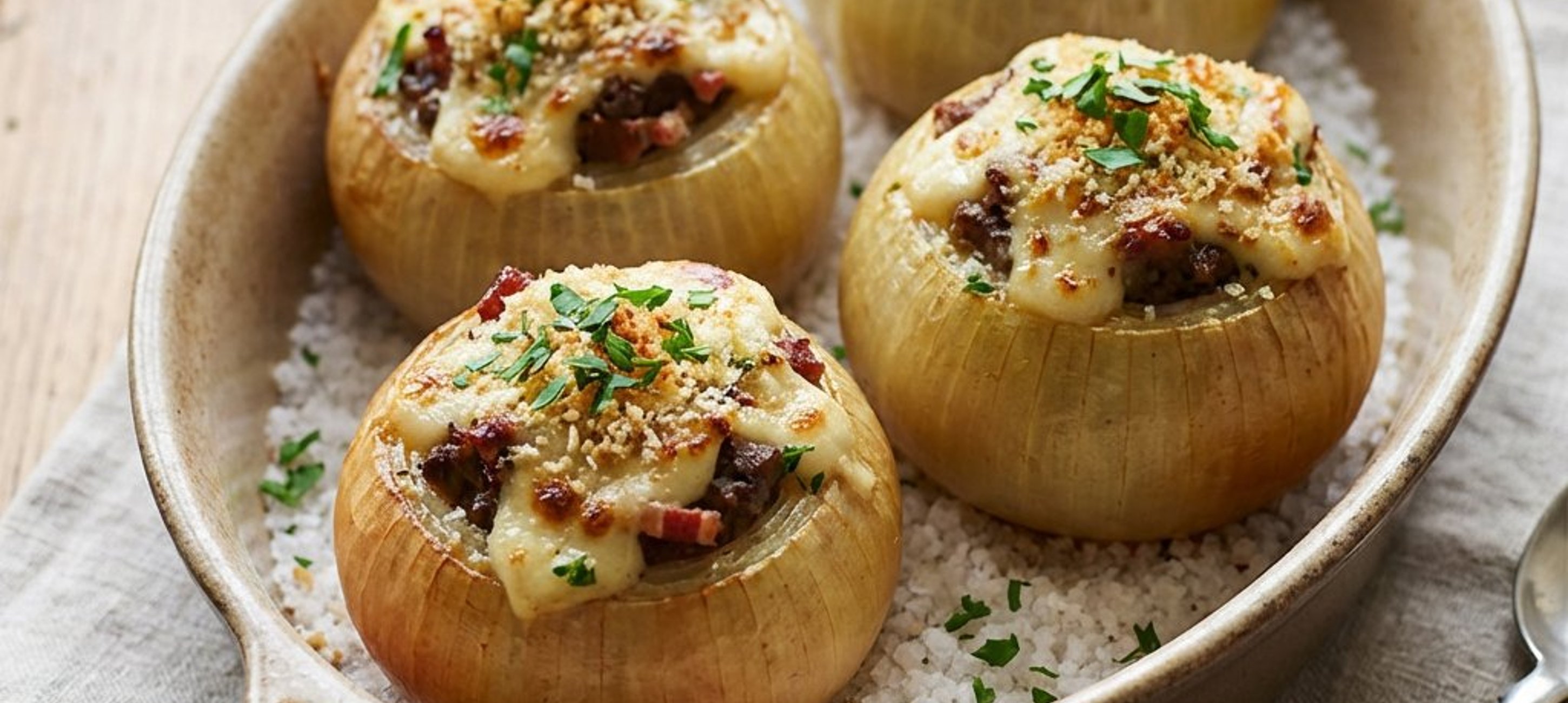 Sfat: Dacă pregătiți sosul bechamel cu o zi înainte, aromele se vor întrepătrunde mult mai bine. Ca garnitură, aceste cepe umplute se potrivesc de minune cu cartofi copți sau un piure proaspăt de mazăre. Poftă bună!