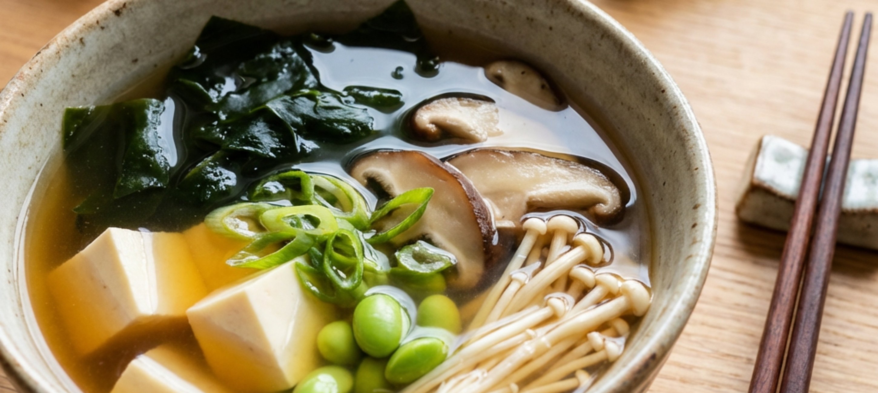 - 3Apoi strecoară supa și ia-o de pe foc. Adaugă pasta miso și amestecă bine, fără să mai fierbi.