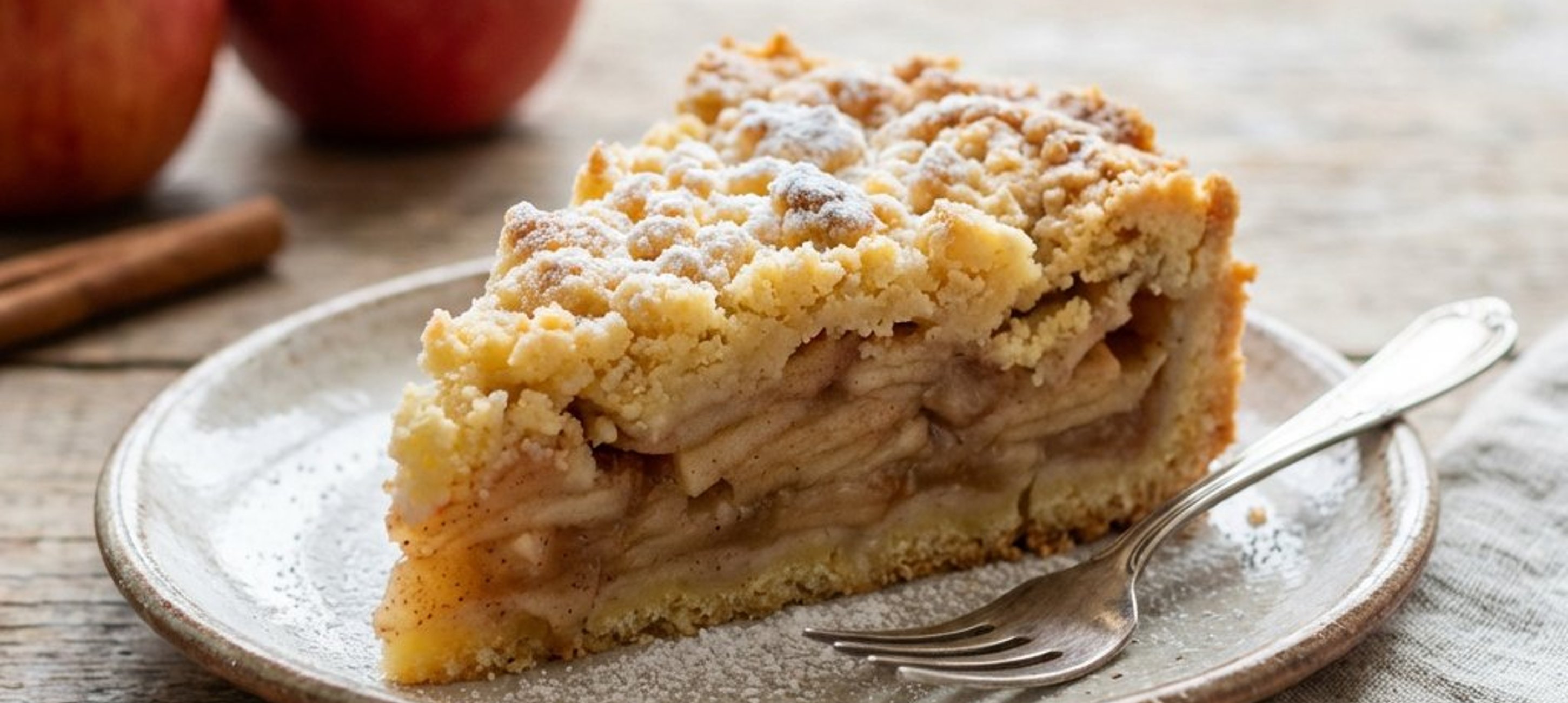 - 3Preîncălziți cuptorul la 180°C. Coaceți blatul din formă timp de 15 minute. După pre-coacere, presărați pesmetul rumenit peste blat, apoi adăugați amestecul de mere, presându-le ușor.