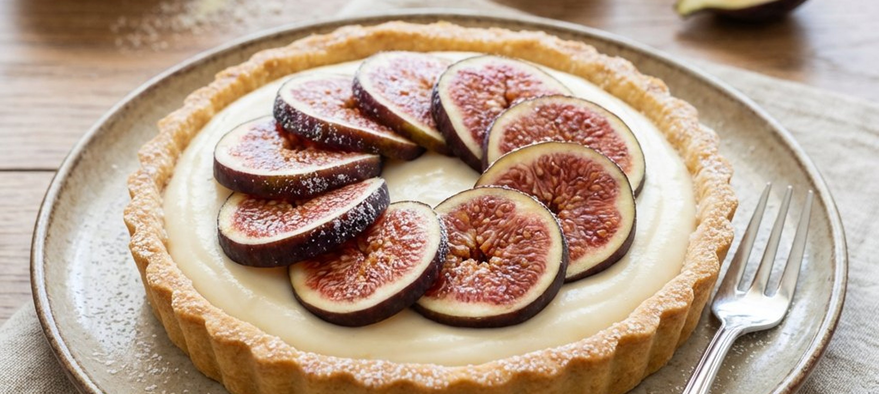 - 1Bateți mascarpone cu laptele condensat și cele 2 ouă rămase. Turnați peste baza de tartă. Coaceți 15-20 de minute la 160°C până se întărește. Lăsați să se răcească, apoi dați la frigider 2 ore. Decorați cu smochine proaspete felii.