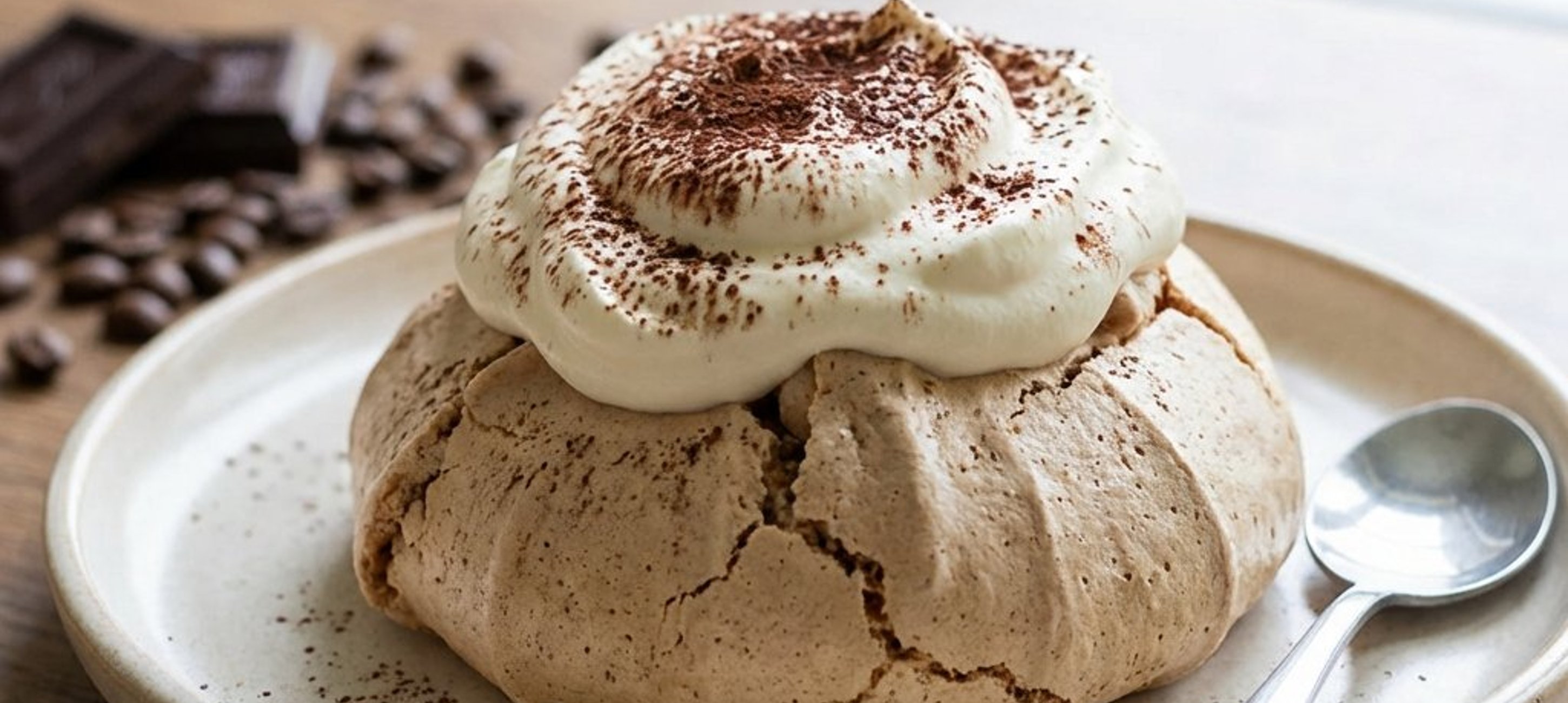 - 1Bateți smântâna pentru frișcă până devine fermă. Dacă doriți, puteți adăuga puțin zahăr pudră, deși bezeaua este deja destul de dulce. Decorați blatul răcit cu frișcă, pudrați cu cacao și, opțional, cu fructe proaspete. Serviți imediat pentru a preveni înmuierea bezelei de la umiditatea frișcăi.