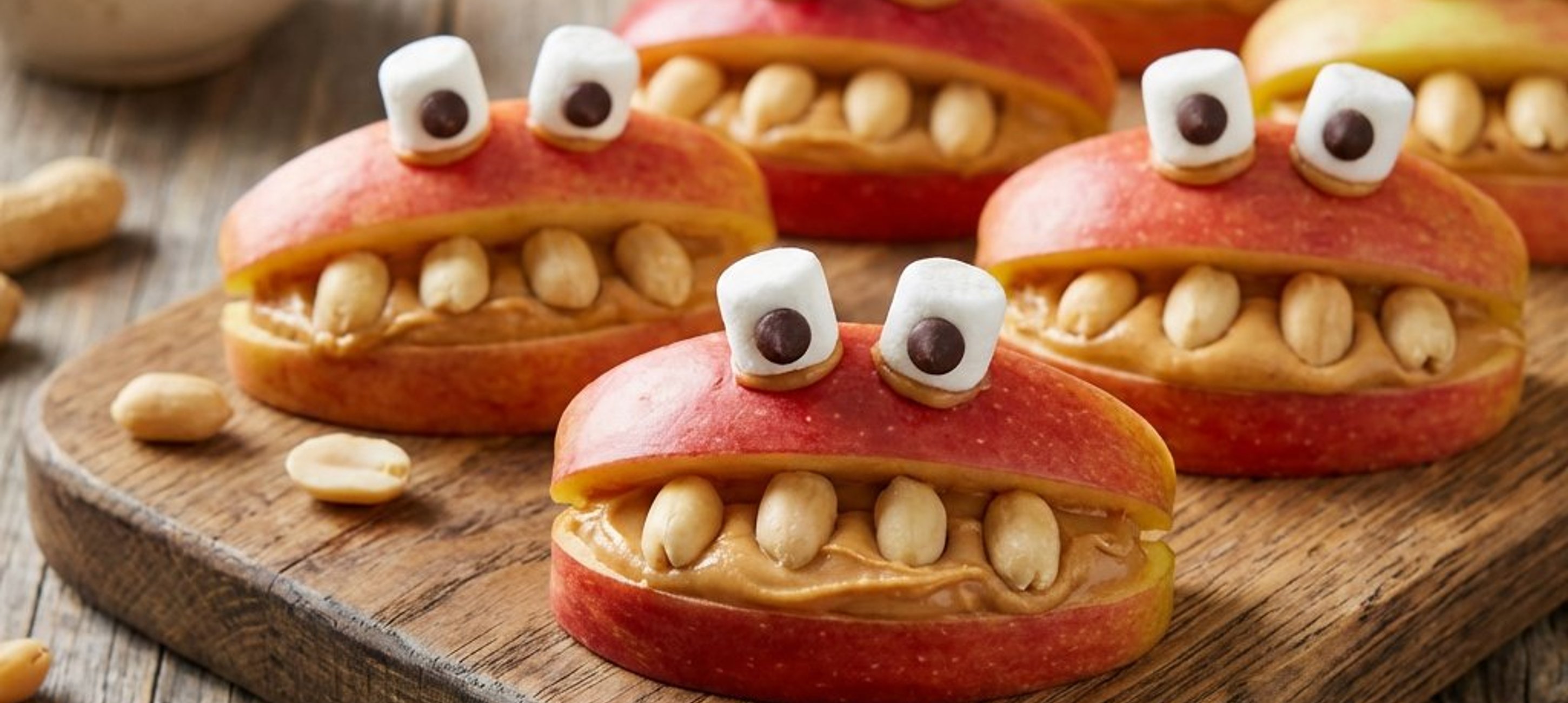 Pentru un efect și mai înfricoșător, puteți folosi mere verzi și roșii amestecate. Dacă nu aveți marshmallows, puteți folosi felii mici de banană pentru ochi!