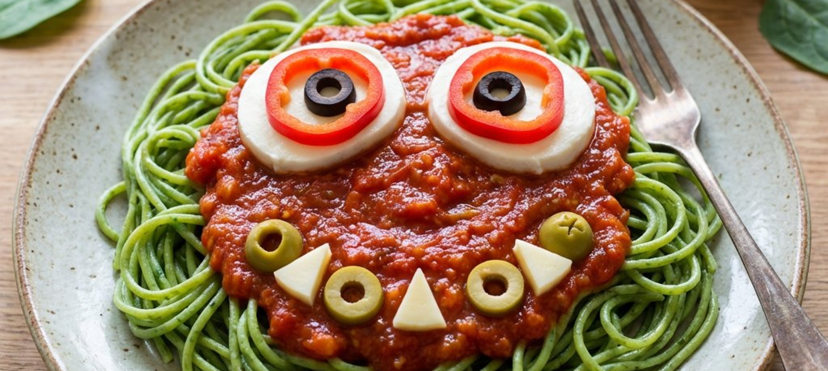 Pentru a obține culori diferite, poți folosi sfeclă roșie pentru spaghete roz sau curcuma pentru spaghete galbene. Lasă-i pe copii să decoreze fața monstrulețului pentru o experiență culinară interactivă!