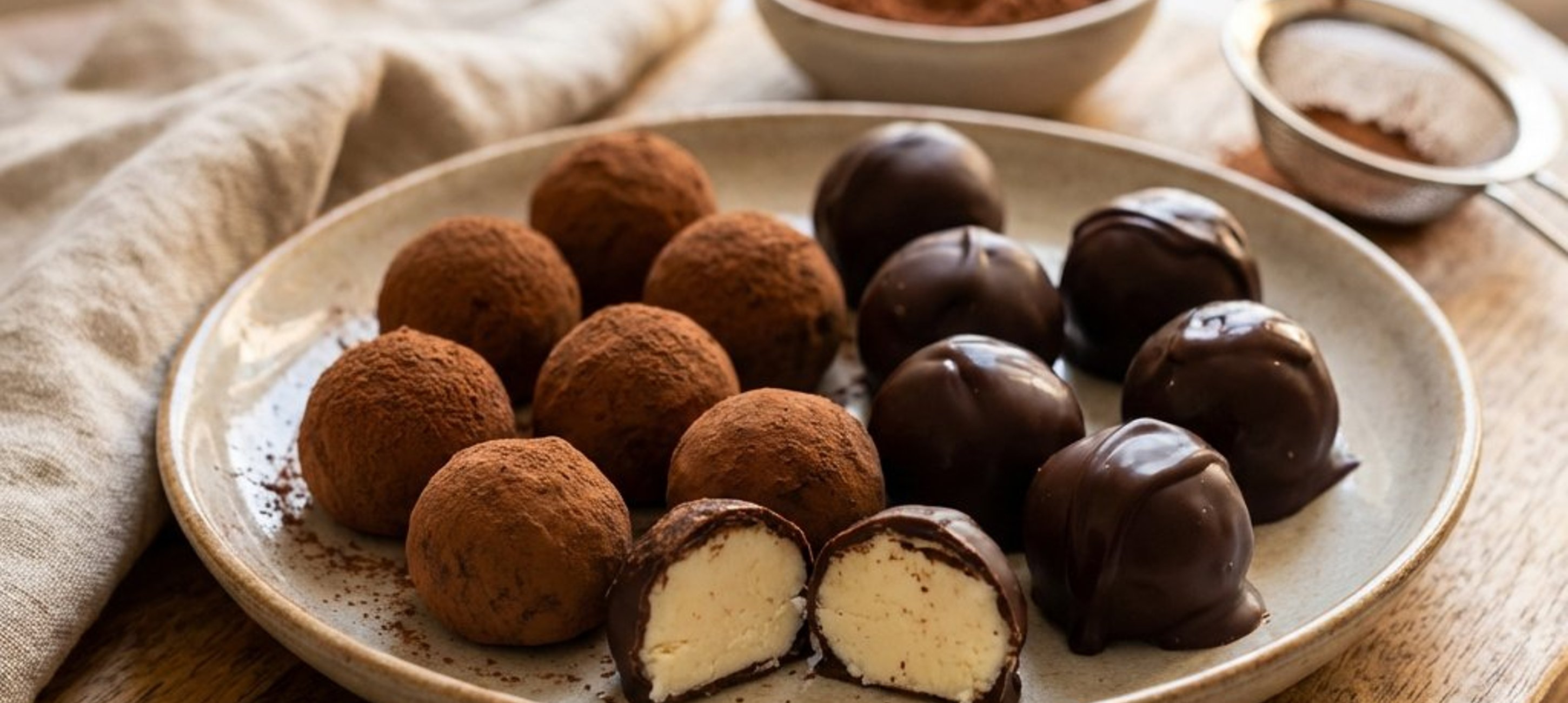 - 2Așază pralinele pe o tavă și pune-le din nou la frigider pentru încă 2 ore (sau peste noapte).