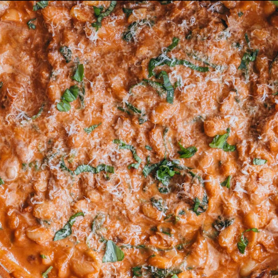 - 2Lasă să fiarbă până când compoziția se îngroașă, aproximativ 10 minute. Potrivește de sare (cu atenție, majoritatea ingredientelor sunt deja sărate), adaugă piper, busuioc tocat și spanac. Amestecă, apoi încorporează smântâna și parmezanul. Servește cu pâine prăjită. Poftă bună!