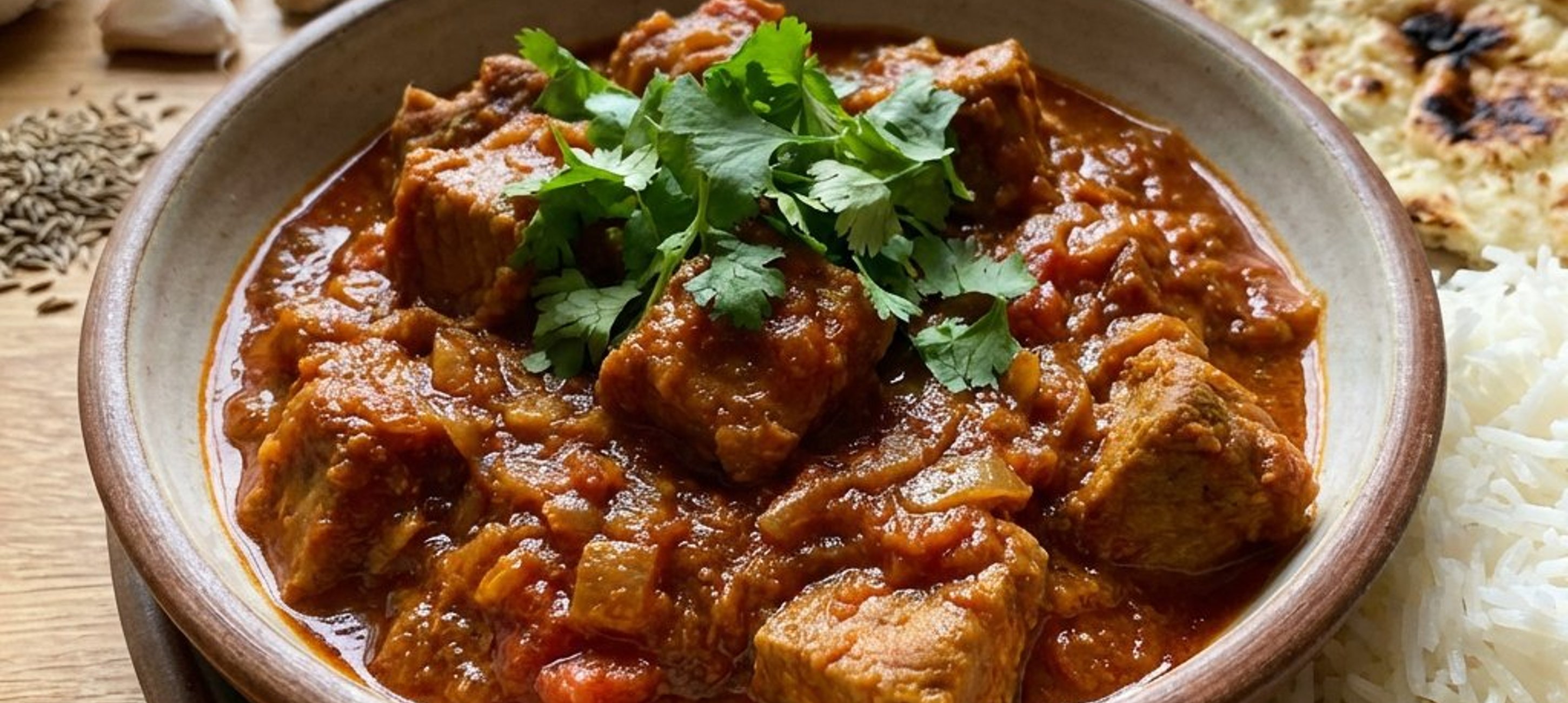Pentru un gust și mai autentic, poți lăsa carnea la marinat în pasta de curry și usturoi timp de câteva ore înainte de gătire. Servește cu un iaurt răcoritor alături pentru a echilibra iuțeala preparatului.