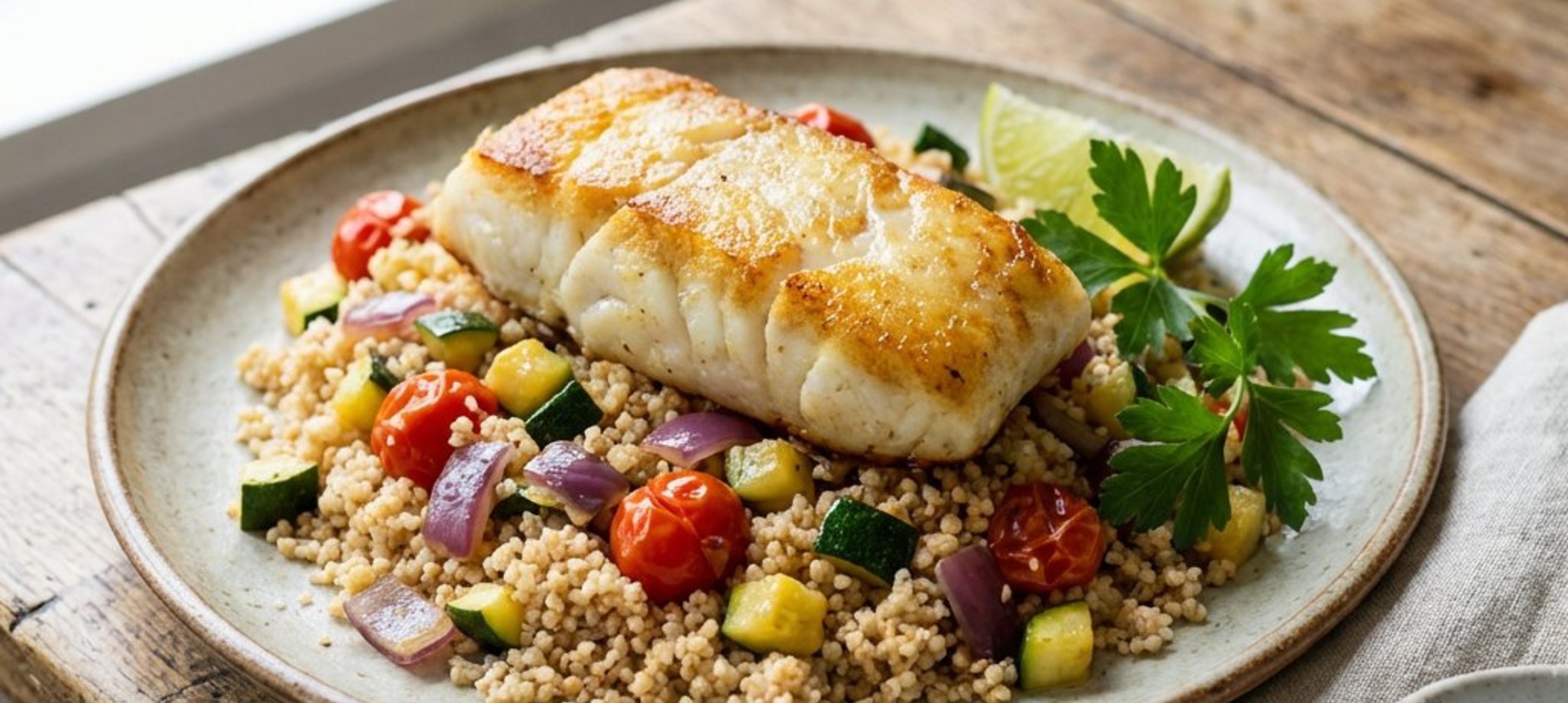 Pentru un plus de aromă, puteți adăuga puțin ardei iute tocat mărunt în amestecul de cușcuș. Serviți peștele imediat, cât este cald, pentru a-i păstra textura fragedă.