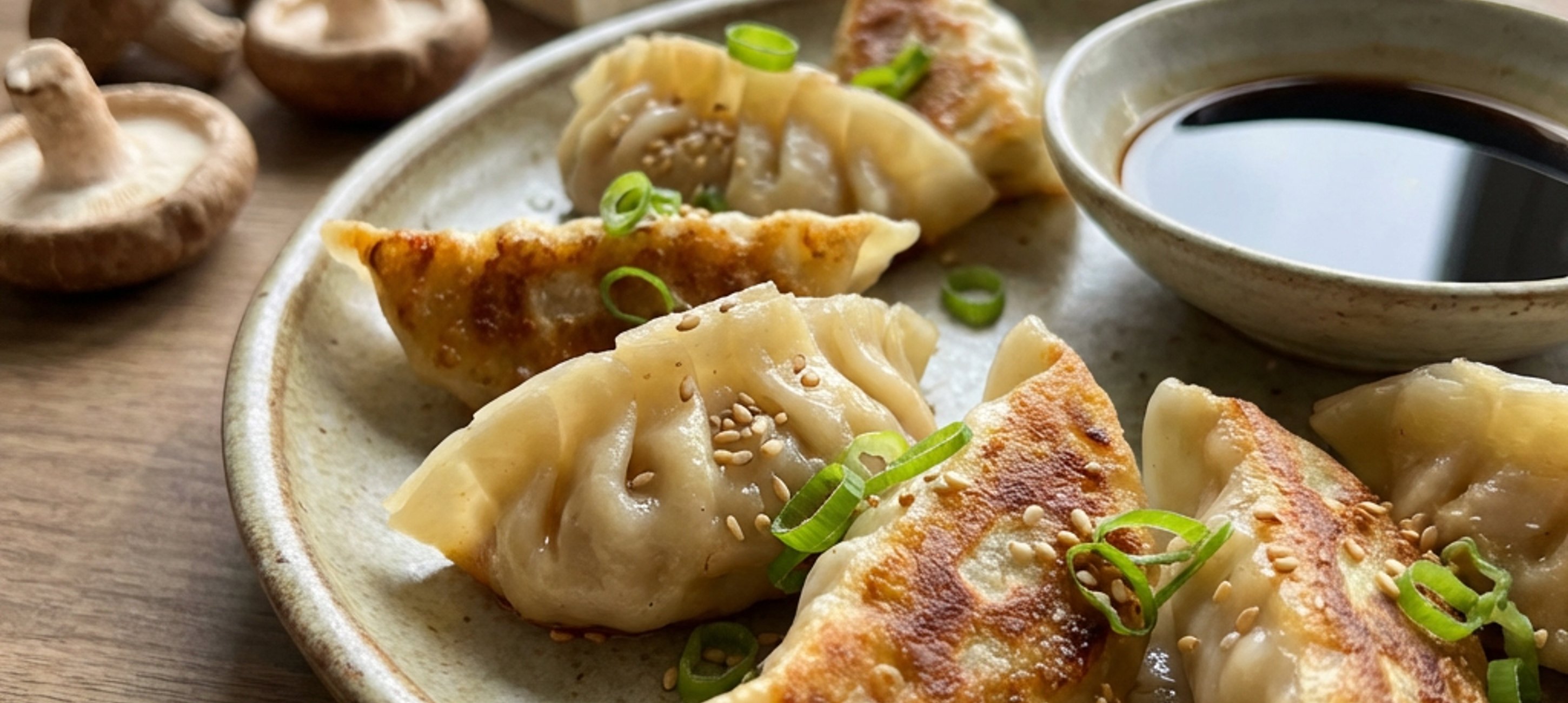- 6Încălzește o tigaie antiaderentă și adaugă uleiul de rapiță. Așază gyoza în uleiul încins și rumenește-le rapid pe o parte, timp de 3–4 minute, până devin aurii. Toarnă apa în tigaie, acoperă cu un capac și lasă-le să se gătească la abur timp de 4 minute.
