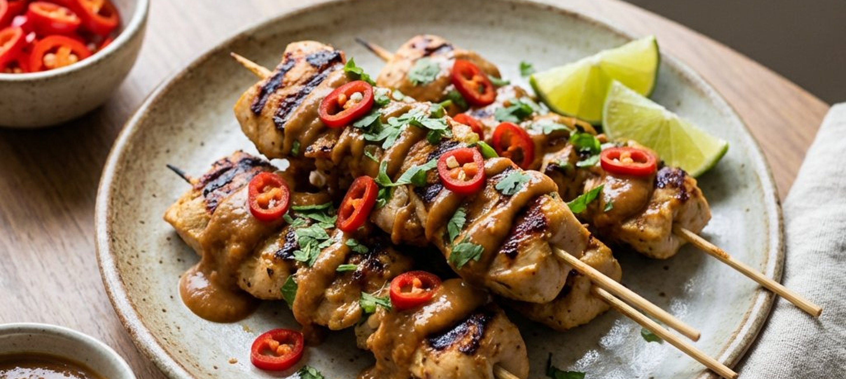 Pentru un rezultat optim, folosește bețe de frigărui din bambus înmuiate în apă înainte de utilizare, pentru a preveni arderea lor pe grătar. Sosul de arahide poate fi ajustat ca densitate adăugând treptat câte o lingură de apă caldă.