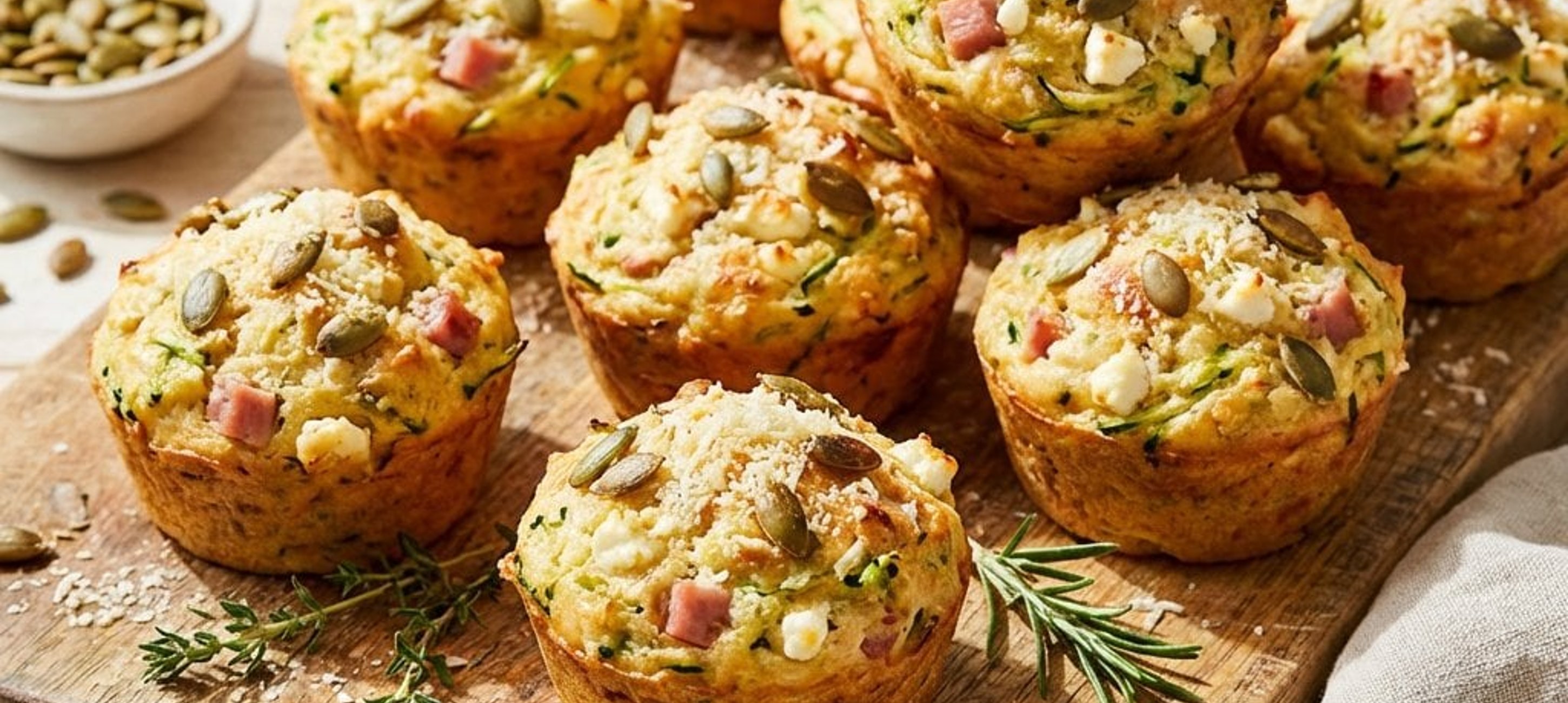 - 8Presărați deasupra fiecărei brioșe parmezan ras și semințe de dovleac.