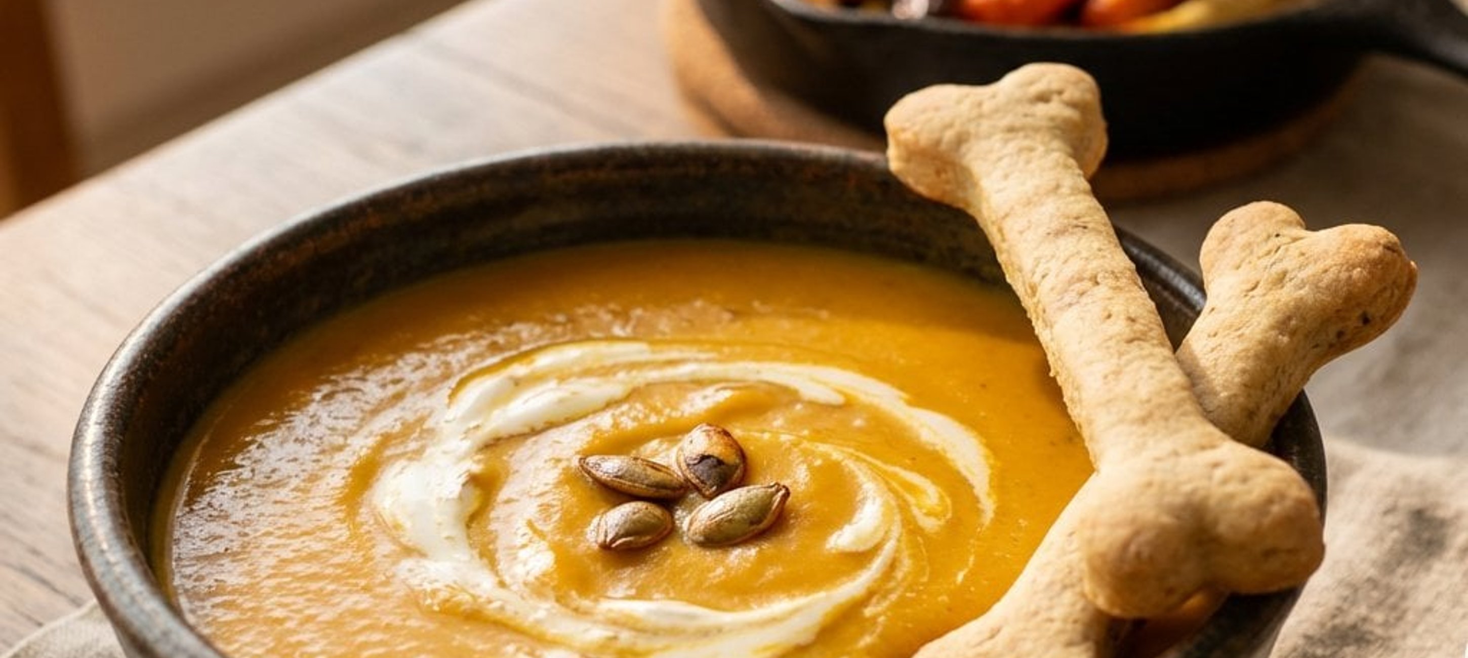- 4Servim supa fierbinte în boluri, decorăm cu smântână și fulgi de chilli și servim alături de oasele proaspăt scoase din cuptor.
