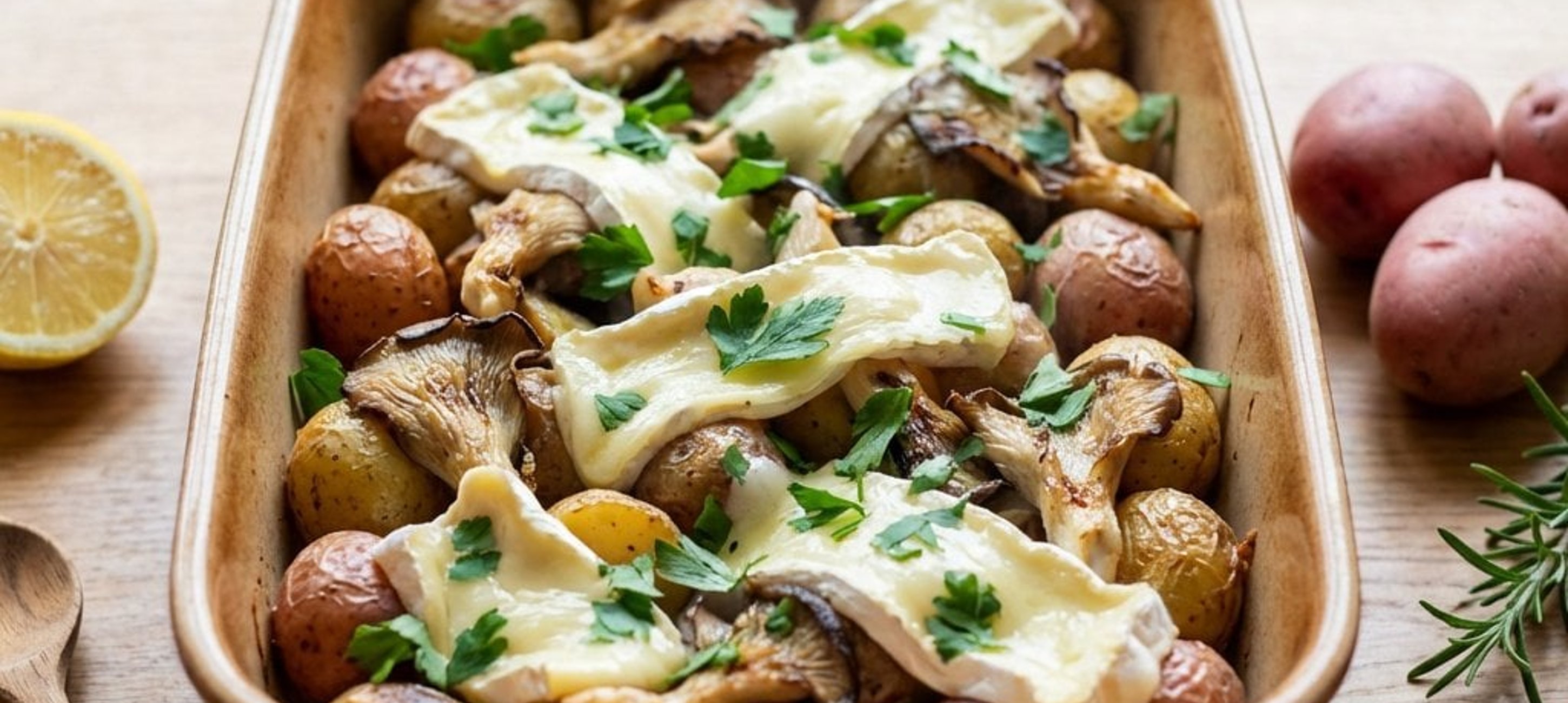 Pentru un rezultat optim, lăsați cartofii și ciupercile la marinat cel puțin o oră înainte de coacere. Acest lucru va permite aromelor de lămâie și rozmarin să pătrundă adânc în ingrediente. Serviți cu o salată verde proaspătă alături.