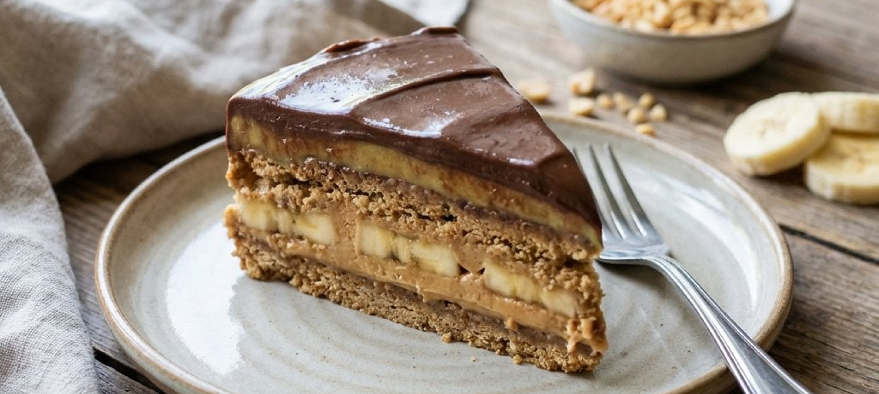- 2Întindem amestecul rezultat uniform într-o formă de tort (diametru de 20 cm), presând bine. Deasupra blatului, așezăm o banană tăiată felii.